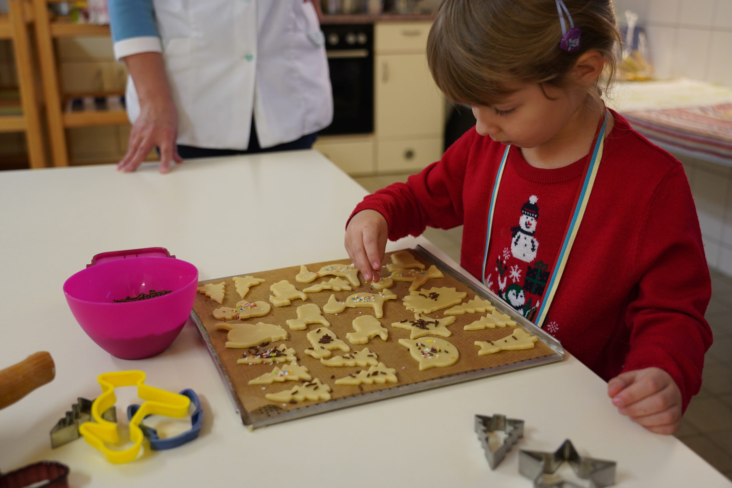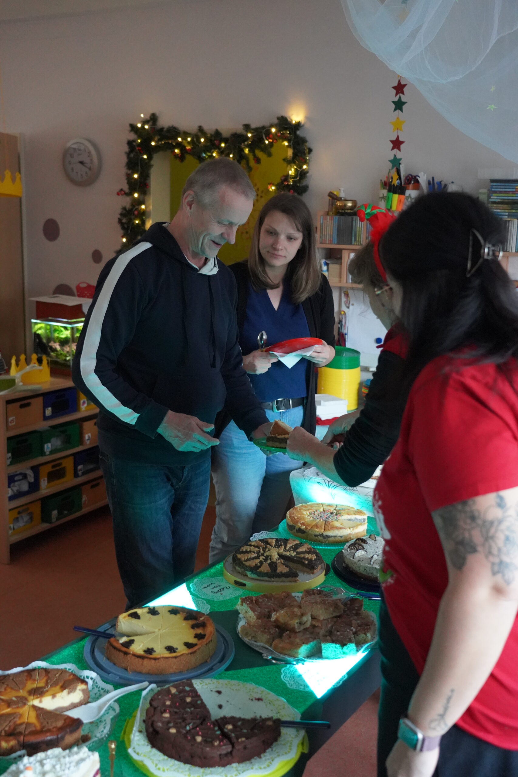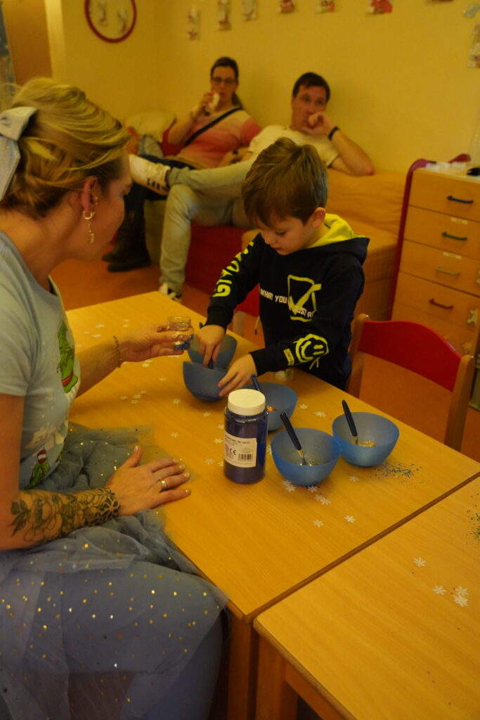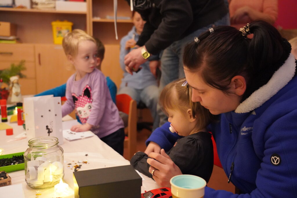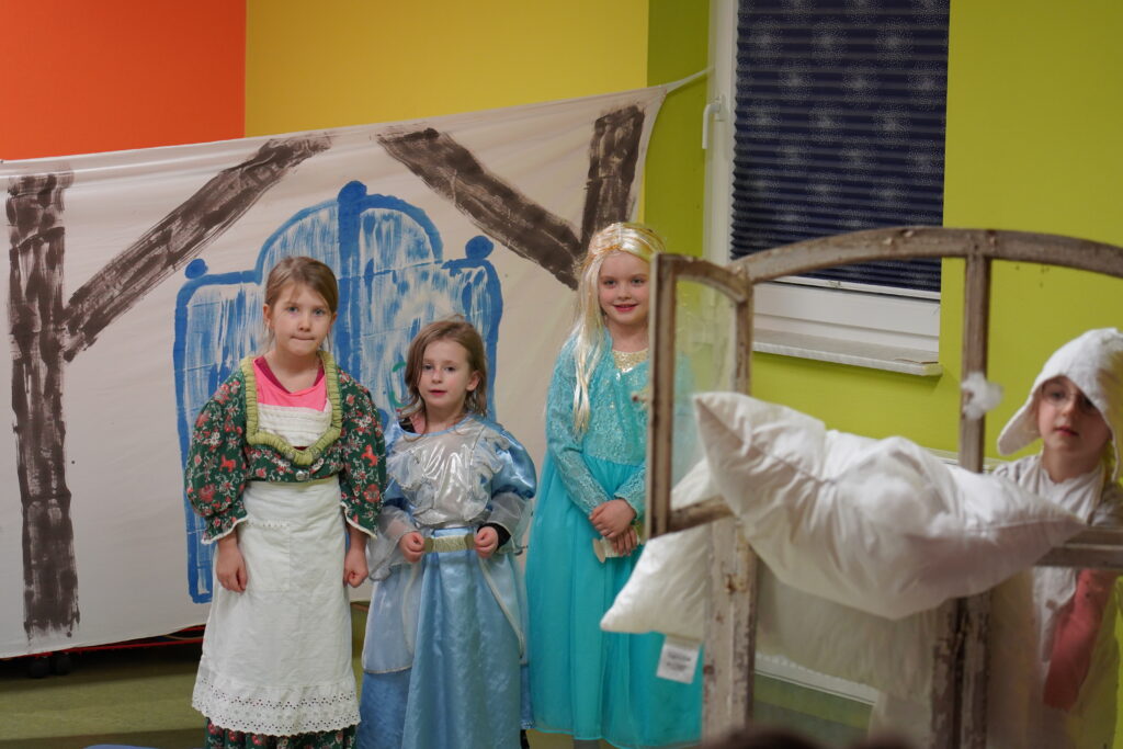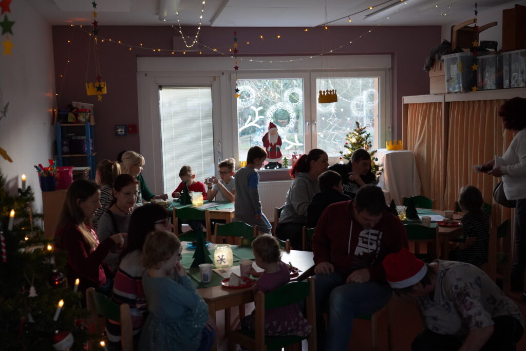 am 05.12. 2025 fand wieder unser wunderschöner Weihnachtsmarkt statt. Die Vorbereitungen liefen schon Wochen vorher und so sah alles wunderschön geschmückt aus. In jedem Zimmer gab es Bastelein und Leckerein zum Thema Märchen. Die Vorschüler waren natürlich sehr aufgeregt, denn sie hatten das Märchen Frau Holle für unsere Besucher einstudiert. Aber alles klappte perfekt und es gab viel Applaus für die Vorführung. In der Küche konntern wieder mit der Bäckerei Haase aus Zabeltitz leckere Plätzchen gebacken werden. Danke dafür.